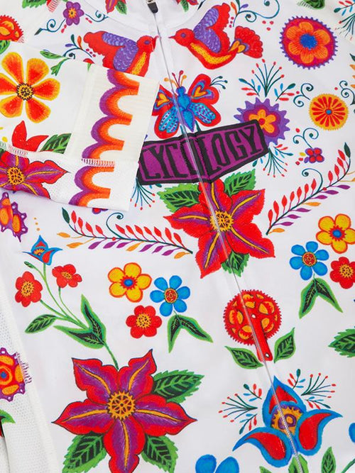 Inspired by Frida Kahlo & the vibrant colours of Mexican folk art which perfectly illustrates the sensory delights of cycling: sunshine, vivid colours, beautiful bold flora & fauna.