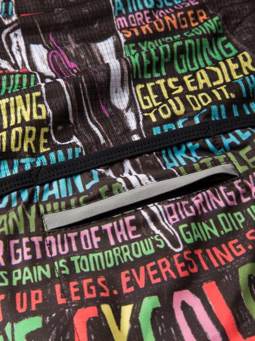 Three rear pockets and a zip pocket are perfect for storing your ride essentials and a rear hem gripper keeps the jersey in place. A full length YKK zipper makes it easy to control ventilation and reflective elements add security when the light begins to fade. With a striking original Cycology design this jersey provides all-day comfort and head-turning style.