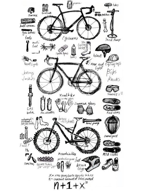 The correct number of bikes to own is N+1(where n is the number currently owned) + X squared (where X is the amount of corresponding equipment & gear needed to use each bike).