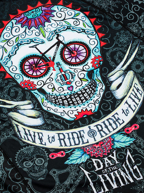 Our Cycling Skull Art made of MTB parts. Flash a smiling set of MTB tyre-teeth as you pedal along dirt trails, totally the Day of Really Living. Whether you’re hitting the trails for a few hours or heading out all day, our MTB jersey has all the features you’ll need to keep you riding in comfort.