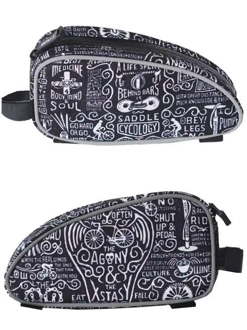Whether you're packing light with nutrition or carrying your essentials on a long ride, our top tube bag is a must-have accessory that comes in a range of colours and our unique designs.