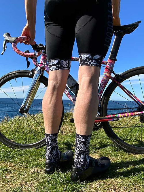 Our Velo Tattoo Cycling Bib Shorts are designed for maximum performance. Cut from high-stretch fabric, with body contoured, panel construction, these cycling bib shorts offer supportive fit.