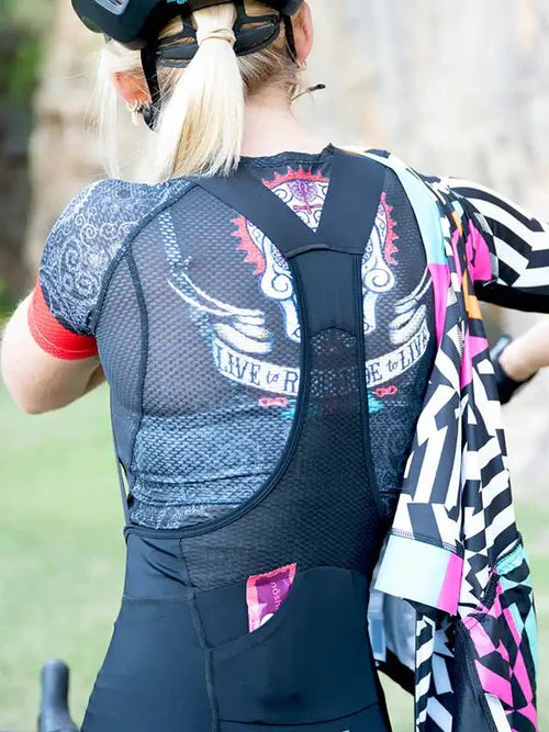 Four-way stretch fabric provides outstanding compression and support, and flatlock seams ensure a smooth finish and long-lasting durability. The bib section is lightweight and stretchy, with soft seamless elastic bib brace straps with mesh panel on the rear for maximum breathability. Featuring a longer leg length, additional comfort is provided with laser-cut leg grippers with silicone-infused fabric cuffs to ensure a firm grip on the legs.